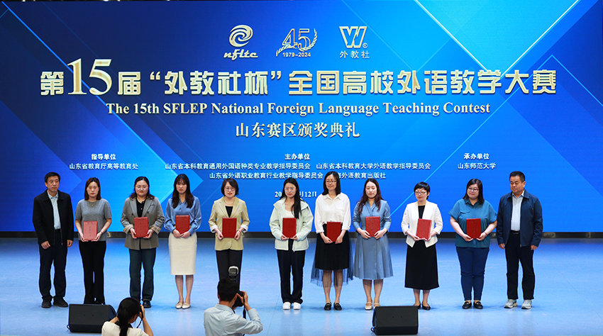 “外教社杯”全国高校外语教学大赛是我国外语界最具影响力的外语教学专项赛事之一。大赛以“彰显专业优势 发展学科素养”为宗旨,旨在深入落实立德树人根本任务,大力促进外语教学发展。本届山东赛区比赛设本科英语专业组、本科大学英语组和高职公共英语组三个组别,共有来自全省126所高校162个团队参加复赛。