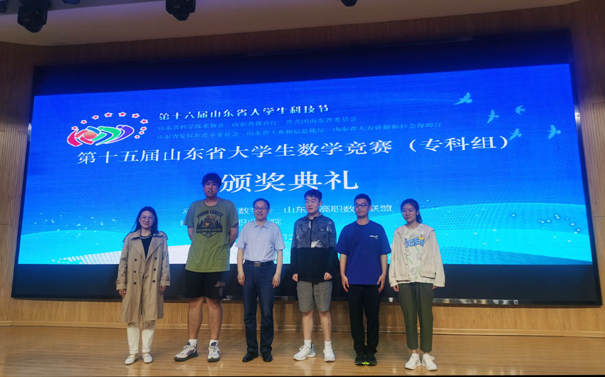 6月2日,由山东省科协、省教育厅、共青团山东省委等六部门联合主办的“第十五届山东省大学生数学竞赛(专科组)总决赛”在潍坊职业学院落幕,我校公共教学部数学教研室副教授孙海英带领四名学生参赛。经过两轮比拼,我校学子在来自全省76所高校的5011名选手中突出重围,斩获一等奖2项,二等奖2项,三等奖3项,取得了学校参加此类大赛以来的最好成绩!孙海英荣获“优秀指导教师”称号。