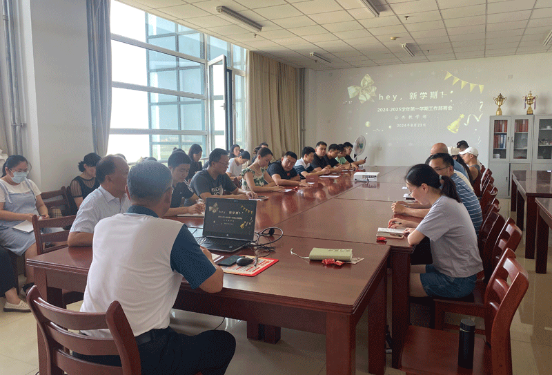 8月23日上午,公共教学部在部会议室召开新学期工作部署会,传达学校教学联席会主要内容,并对新学期主要工作进行部署。全体教师参会,教学部主任吕梅军主持会议。