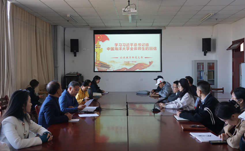 11月5日,公共教学部党支部在部会议室召开党员大会,集体学习习近平总书记给中国海洋大学全体师生的回信。