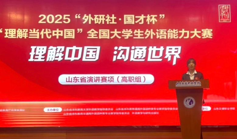 2025年“外研社·国才杯”全国大学生外语能力大赛(山东赛区)演讲赛项于11月1日在山东商业职业技术学院顺利举行。本次大赛由北京外国语大学主办,外语教学与研究出版社协办,吸引了来自全省近98所高职院校的学子同台竞技。我校医学美容技术专业安钰馨同学代表学校参赛,凭借扎实的英语功底与出色的现场表现,在200余名选手中脱颖而出,荣获三等奖(铜奖)。