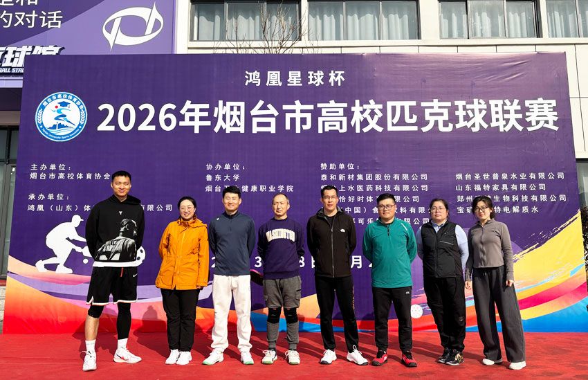 3月28日至29日,由烟台市高校体育协会主办的 2026 年 “鸿凰星球杯” 烟台市高校匹克球联赛在黄渤海新区鸿凰星球社区举行。来自全市 18 所高校的 200 余名师生参赛,我校教师代表队凭借默契配合与出色发挥,荣获团体总分第六名。单项比赛中,宋永刚、胡晓明荣获教工 B 组男子双打第三名;邵惠荣获教工 A 组男子单打第四名;武志浩、焦俊榕荣获教工A组男子双打第六名。