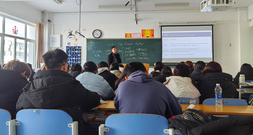 为深入了解一线教学情况,确保新学期教学工作的高质量开展,2月24日开学首日,公共教学部副主任杜留成和办公室副主任徐素旋分别走进英语教研室顾红艳、曲晓雨两位老师的课堂,对新学期的公共课教学工作进行全面检查。